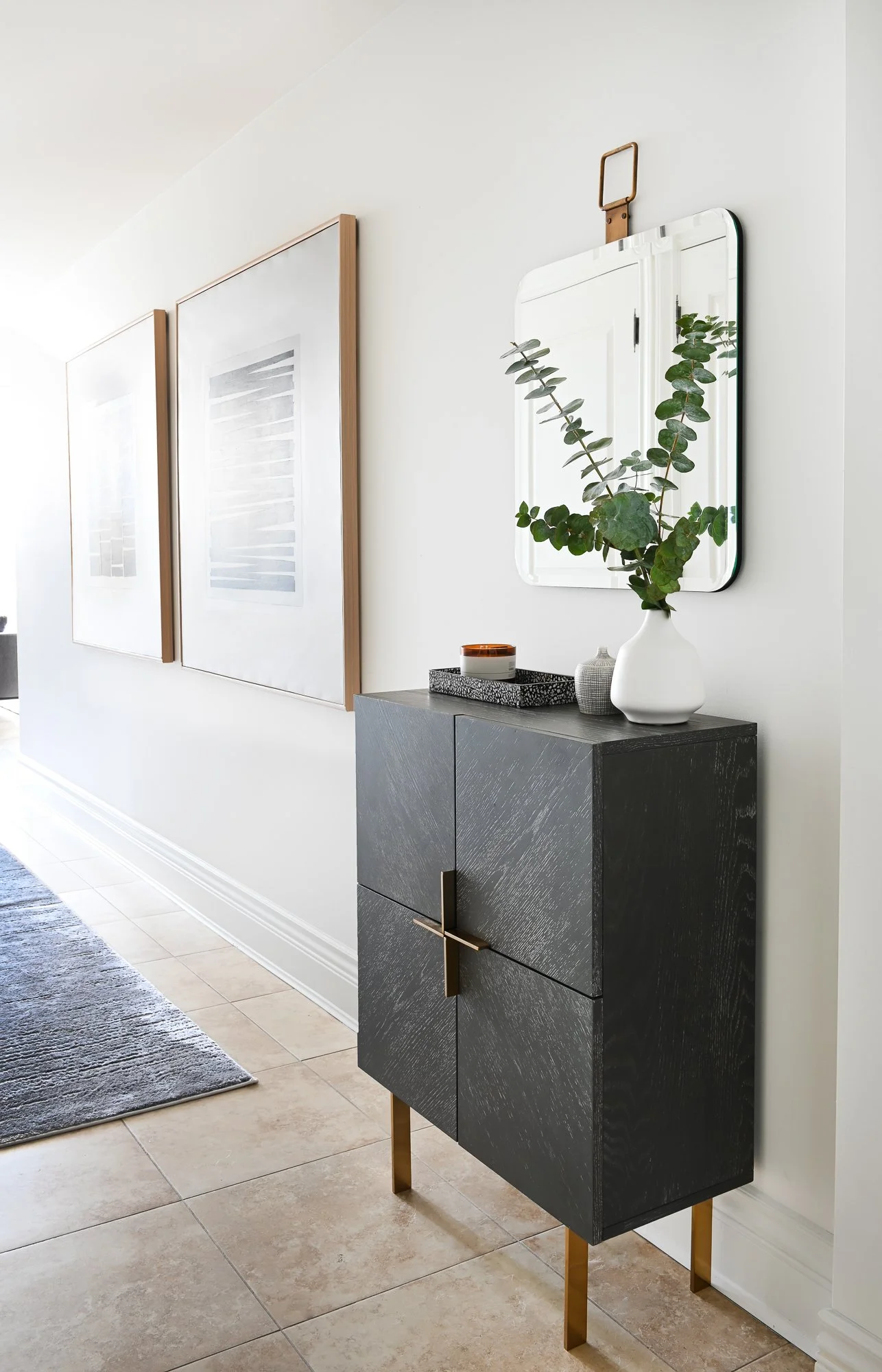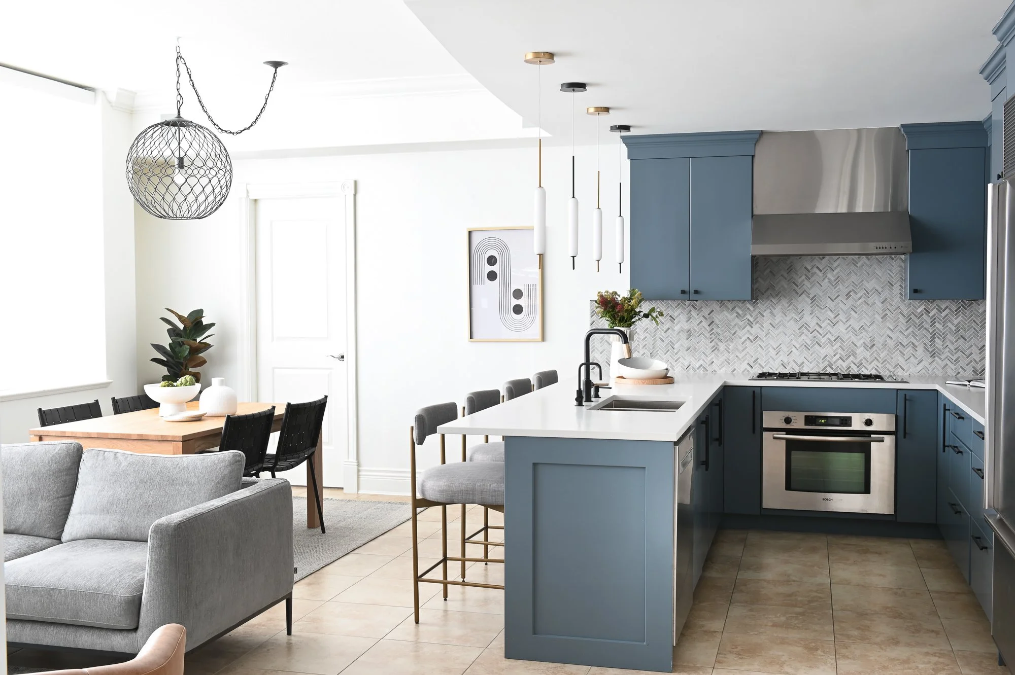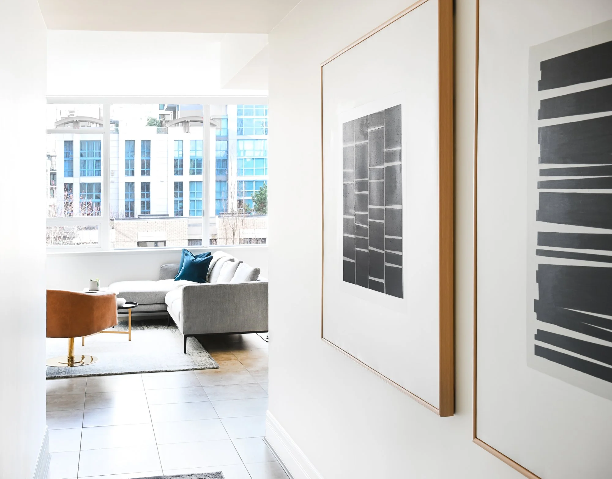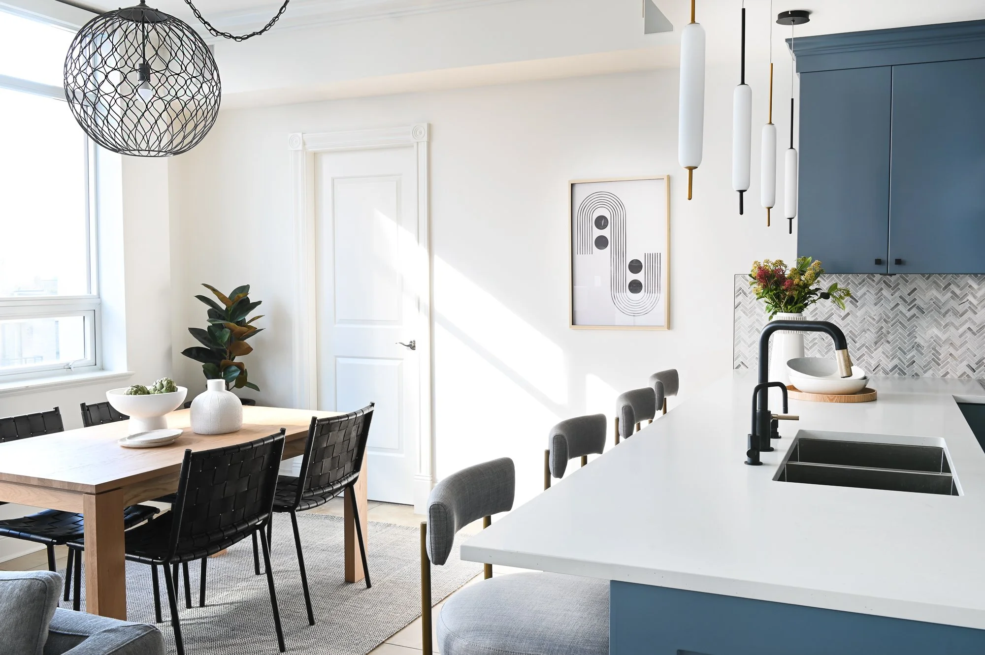 This downtown condo renovation was approached as a thoughtful facelift, updating the space while working carefully within existing constraints. The original kitchen was refreshed with resprayed cabinetry, new countertops, backsplash, lighting, and fixtures, while a new fireplace and reimagined primary bathroom helped elevate the overall feel. By designing around existing finishes that couldn’t be changed, the project focused on layered updates and curated furniture selections to make the space feel special, cohesive, and renewed.
